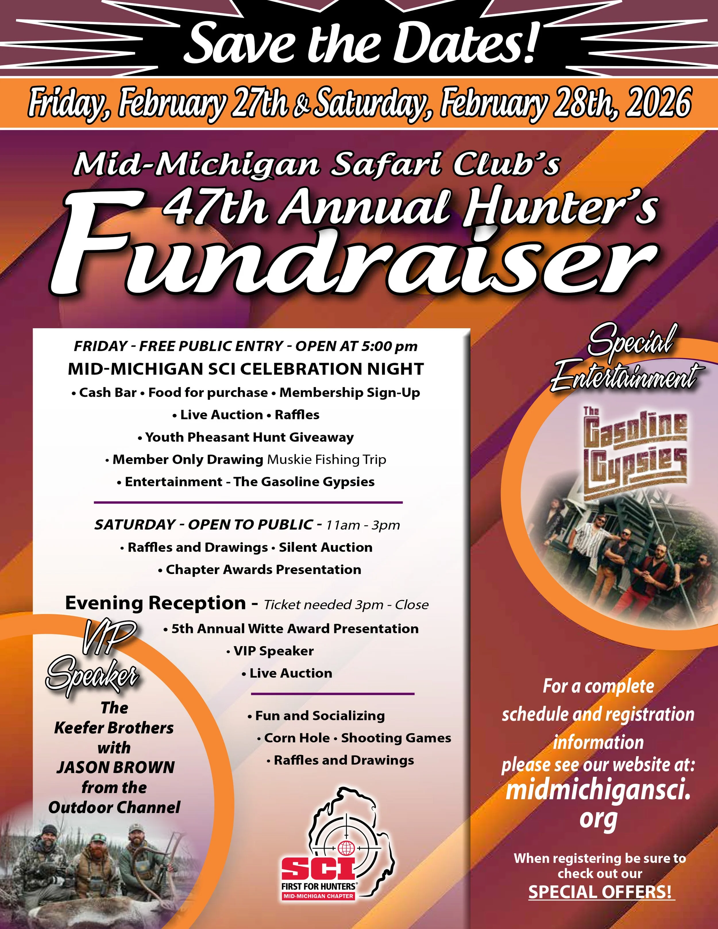 Mid Michigan Safari Club’s 47th Annual Hunter’s Convention Fundraiser!
