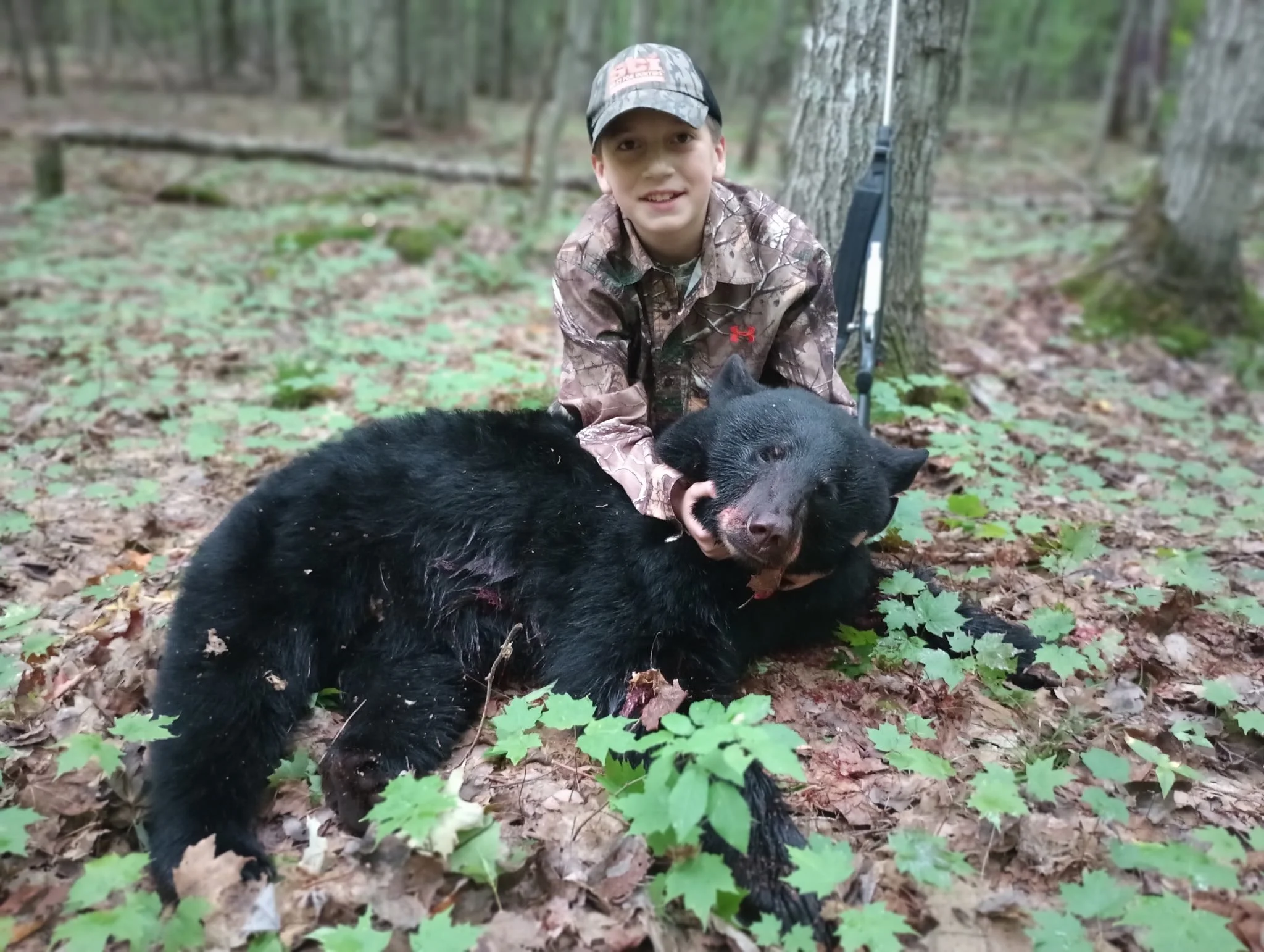 “I can’t find him in the scope!” I found him! I shot again! He was ten yards away from the blind when I shot again. The bear rolled down the ridge and came to a stop. He let out a final gasp and moaned. That's when I knew he wasn’t going anywhere, he was dead. I was in shock. I had done it. I shot my first bear and the thoughts were racing through my little head. What just happened, so many emotions.