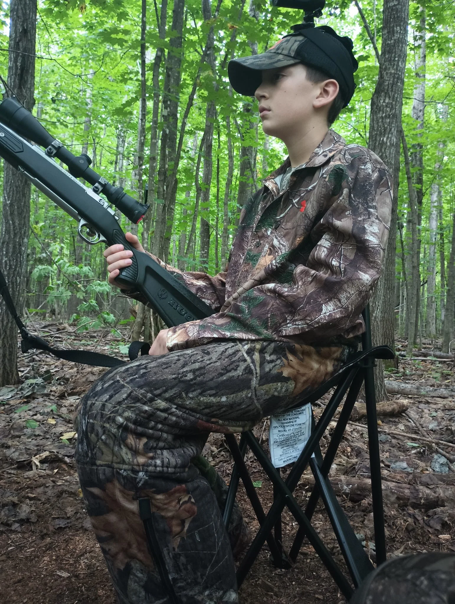 I placed the Ruger 7mm Mag on the shooting stick and made sure I could see and had clear shots around me. My dad told me to look towards the left and forward. He'll look towards the right and behind. There was a wood-pecker that resembled Woody the woodpecker, but slightly more black than blue. Whenever he was close to the ground I jumped a tiny bit then I’d get extremely tremulous, but I would finally settle back down only to jump again. Waiting wasn’t the hard part, it was making sure you saw everything through the deep thick lush forest.